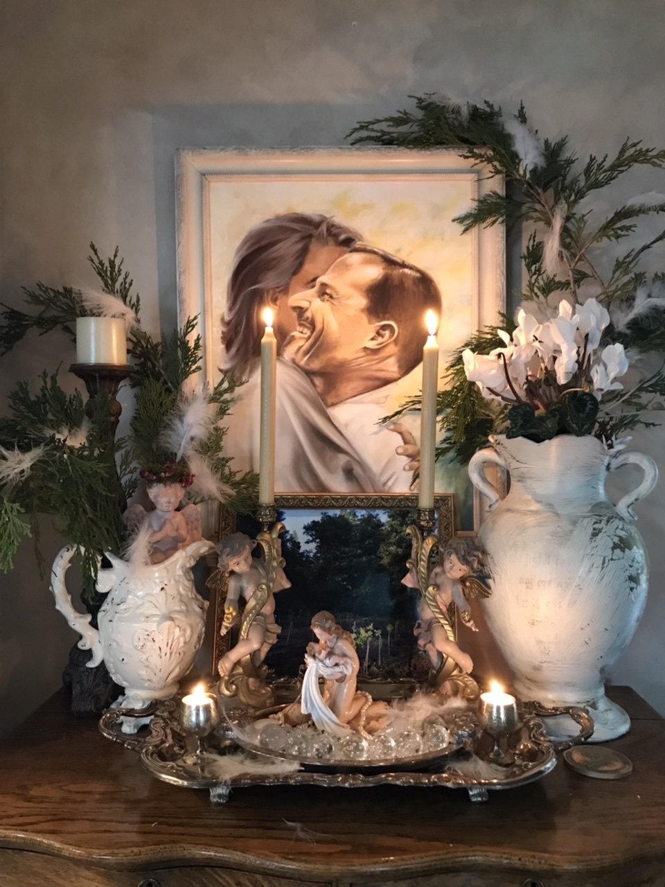 The practice of creating a shrine or an ofrenda is not something I ever imagined doing for my Love, and yet I have since he passed. This season I hadn’t yet decorated it. This wise woman explained how helpful and comforting the practice is and I realized I had stopped. You see, while everyone has been decorating Christmas trees and making wreaths, it’s a little challenging to be enthusiastic about decorating a shrine until…. I hear someone who knows and understands just how important this is.