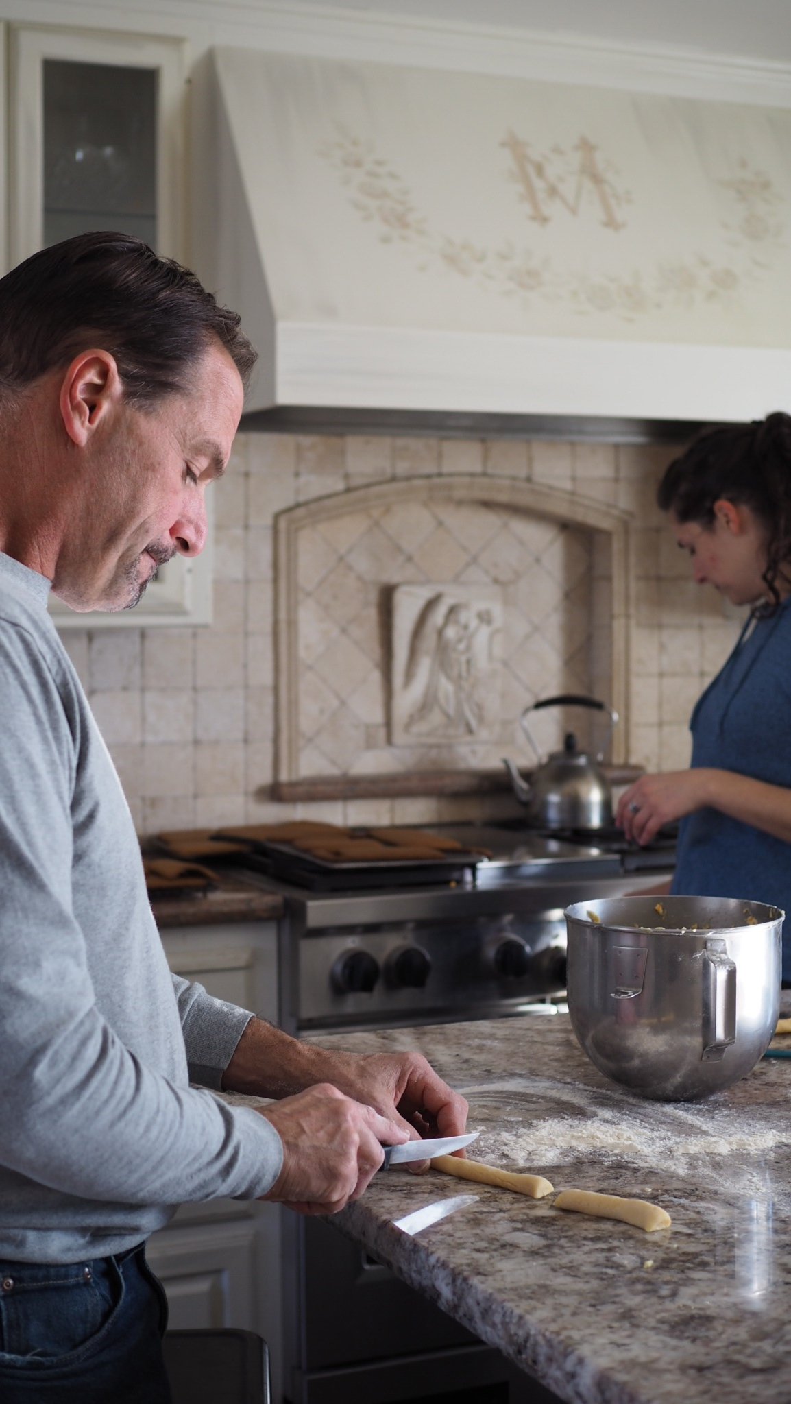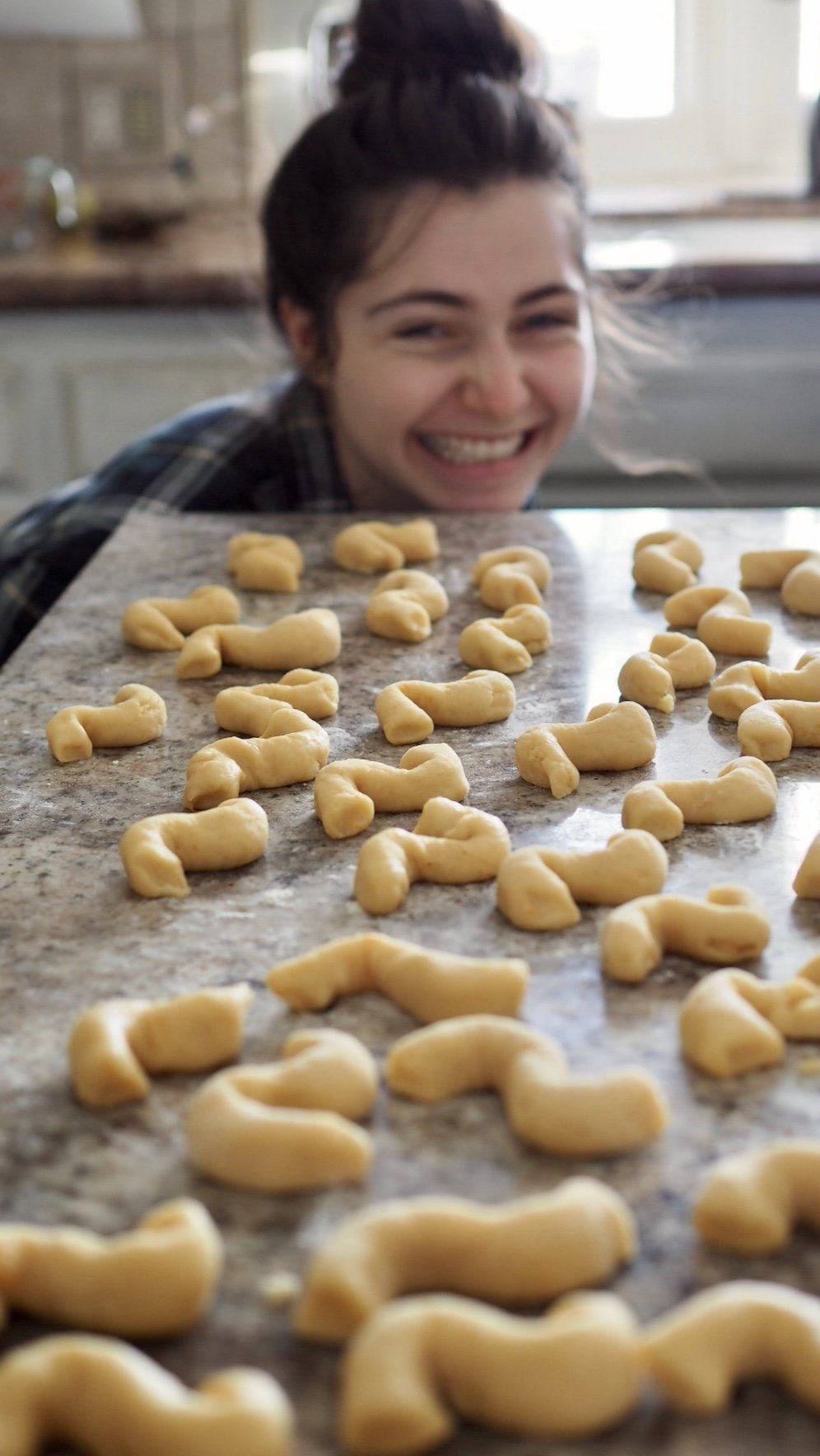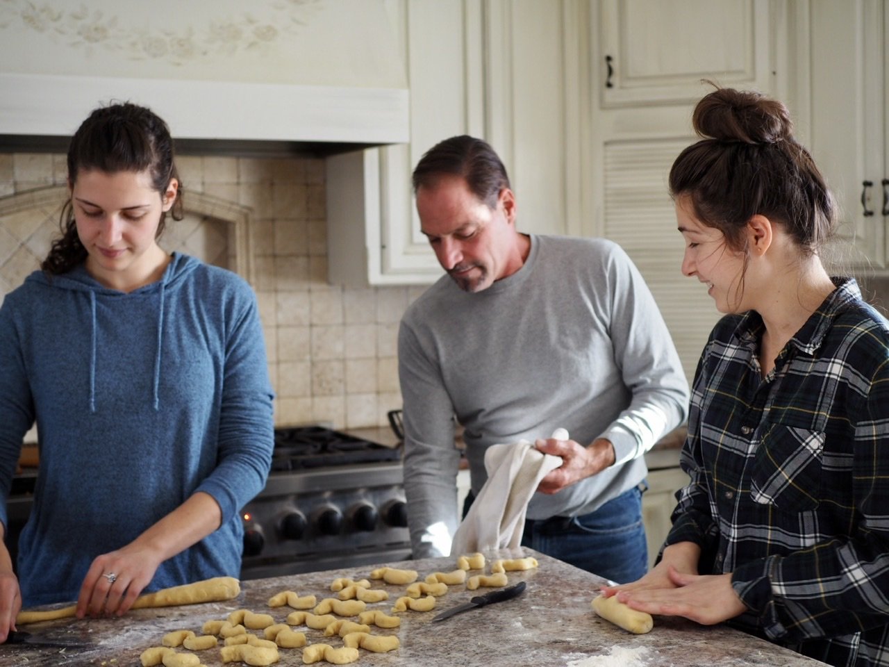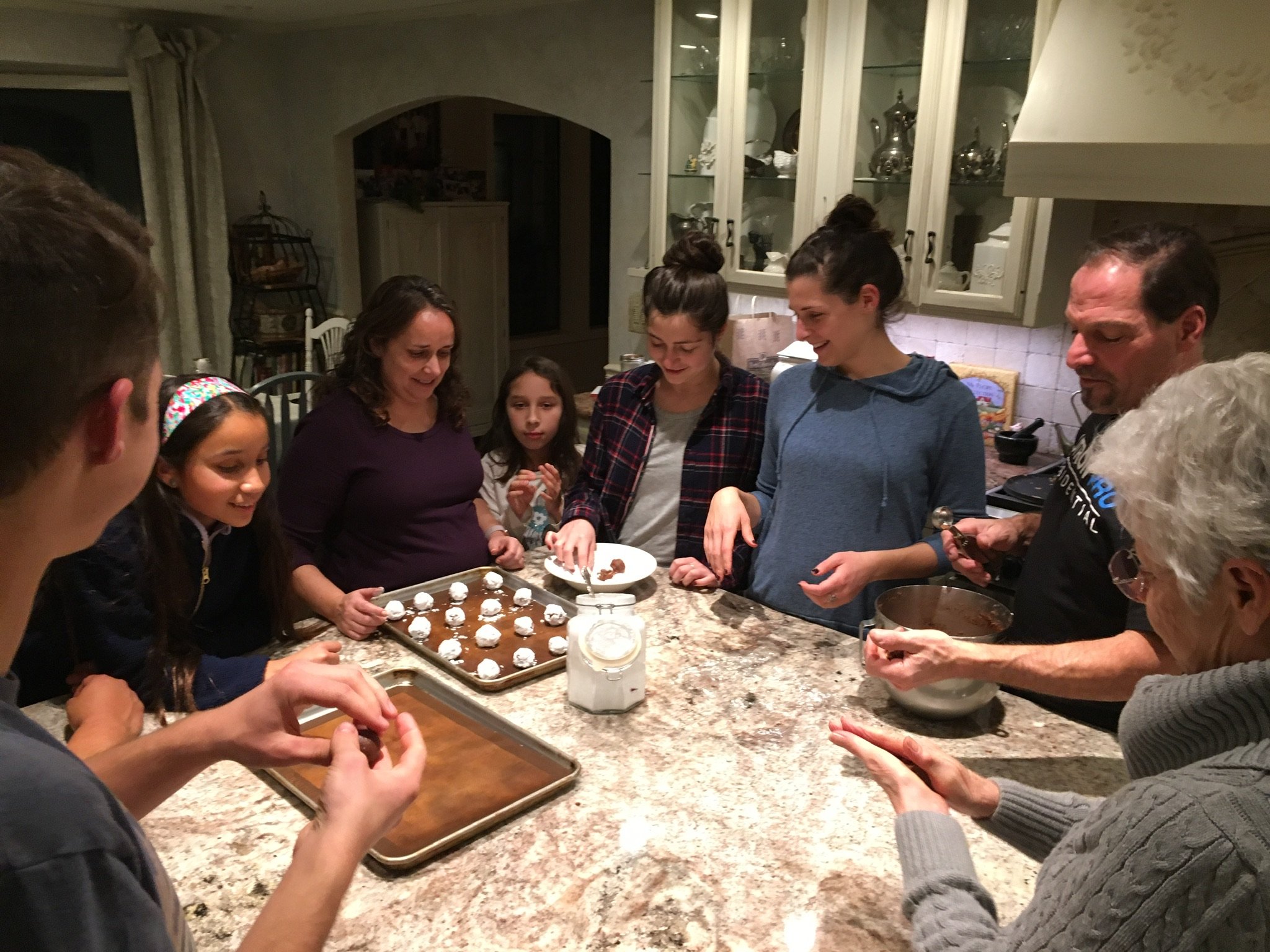 I watched our daughters make our family tradition happen, as they gathered ingredients and organized the process. They invited friends to join us. Those friends touched the dough with their hands, rolled it and filled it with rehydrated sweetness while we enjoyed each other's company.