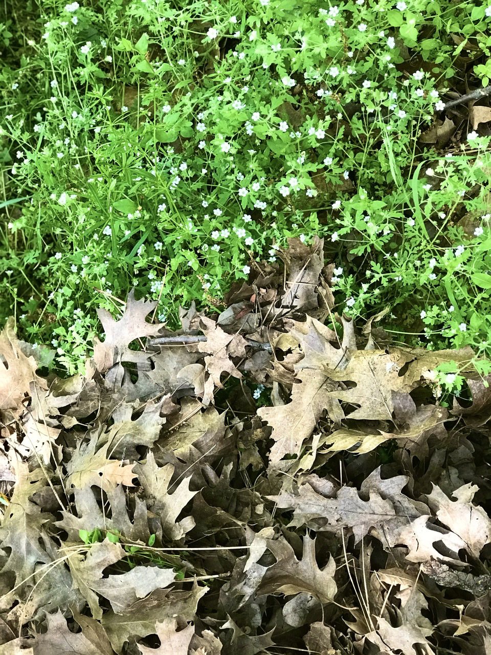 The path is fallen leaves framed by a blanket of tender innocent blossoms