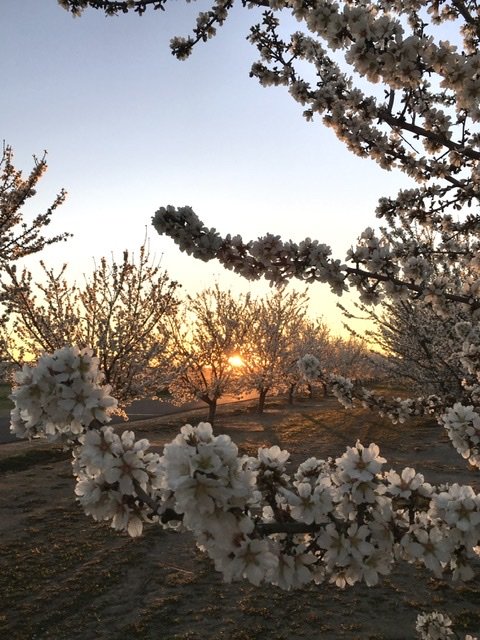 "I was overwhelmed last night as I drove home under a completely rose colored, cloud covered sky, while the landscape was miles of orchards bursting with blossoms! I wished I could have stopped and danced!! Such a beautiful time to drive 120 through the orchards."