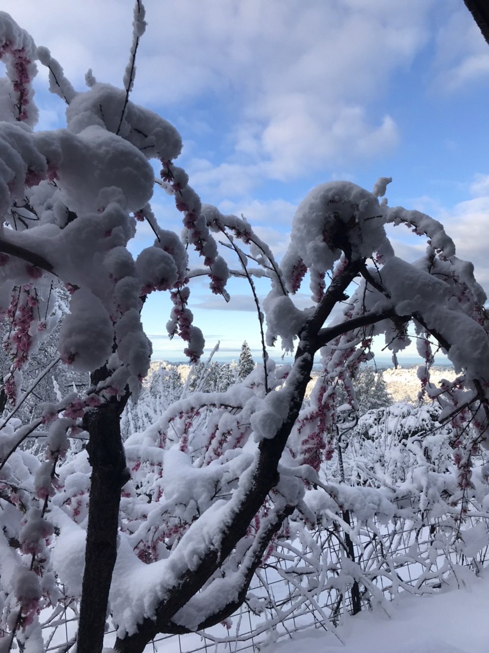 I wept tears in the early spring as that branch, in full bloom, was covered in late snow.