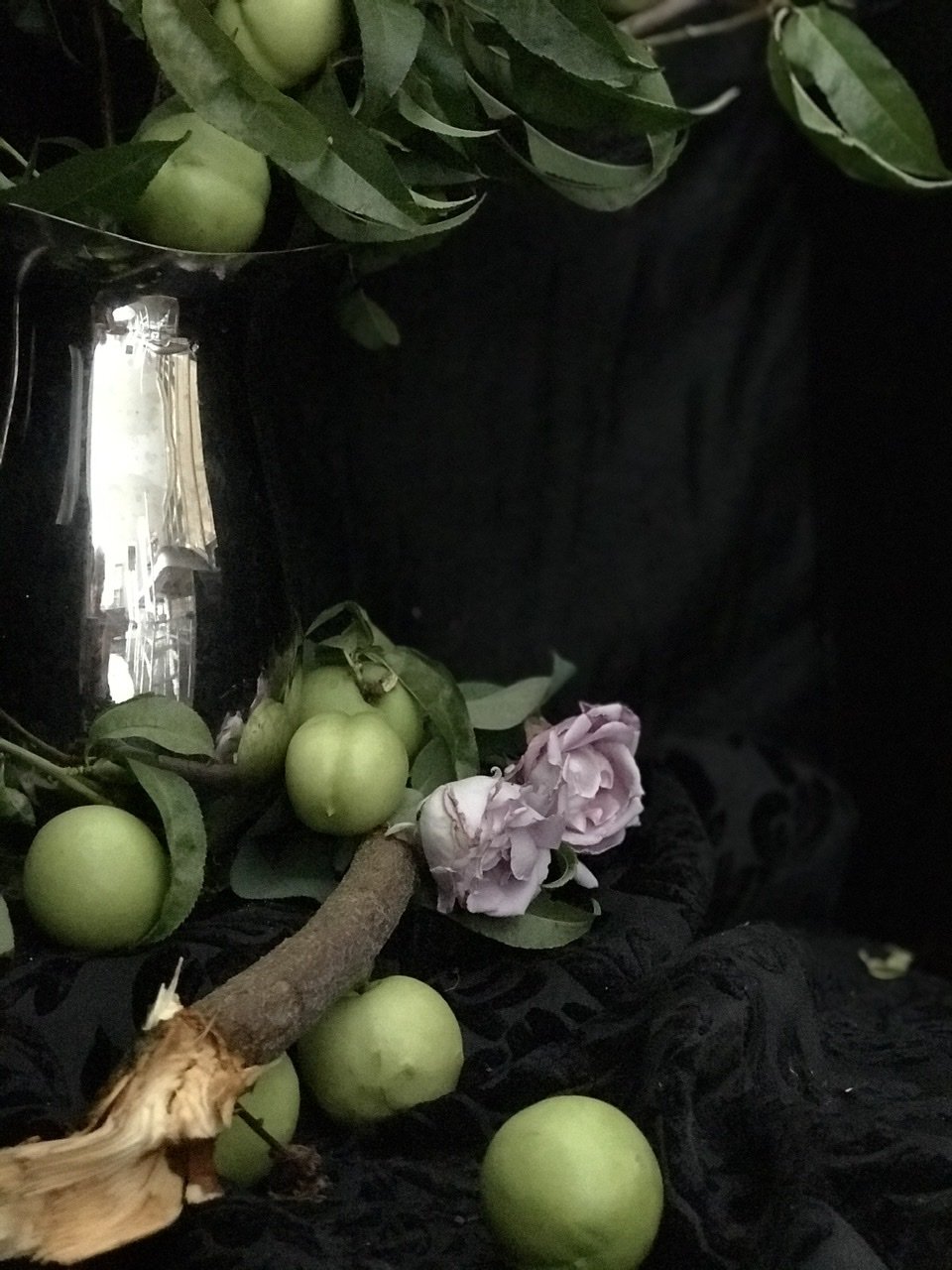 I came home, the pitcher of water holding the broken branch sat in the light. My grateful heart in wonder at doing “something special”, at how God’s ways are not our ways. I plucked a piece of fruit from the branch that fell last week, miraculously, it had ripened.
