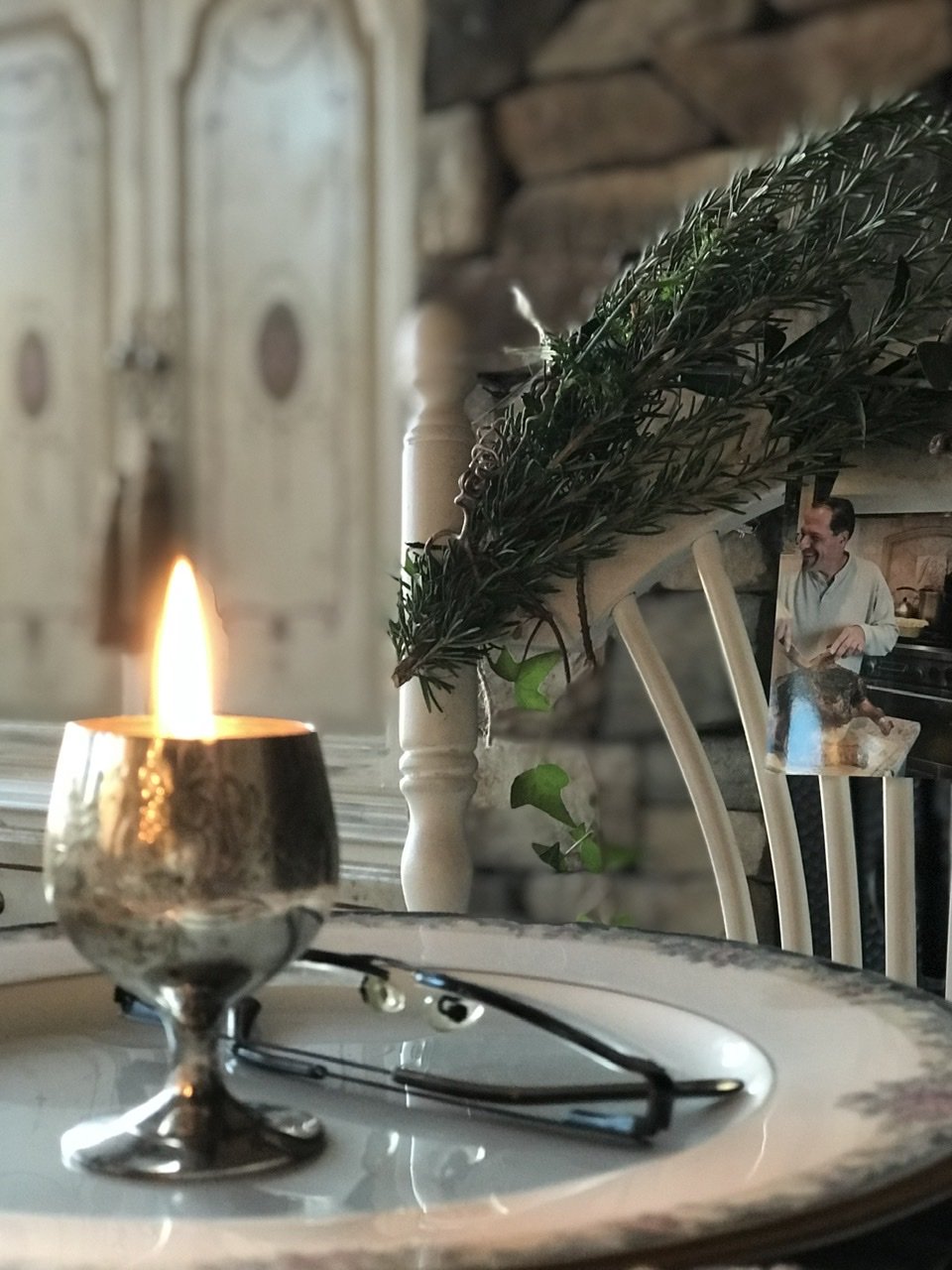 I placed his glasses next to his Bible, I needed something he wore there. Something to see the unseen. Last, I placed a candle in the cup we used for communion and the flame burned beside me through the meal.