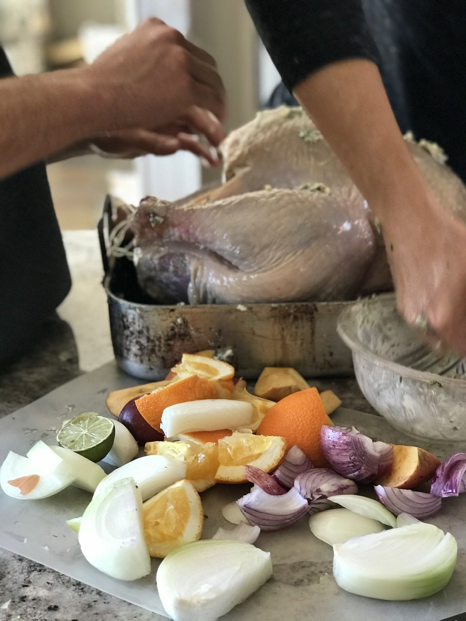 We brine our turkey for 3-4 days, stuff with fruit and vegetables and cover in an herb butter.