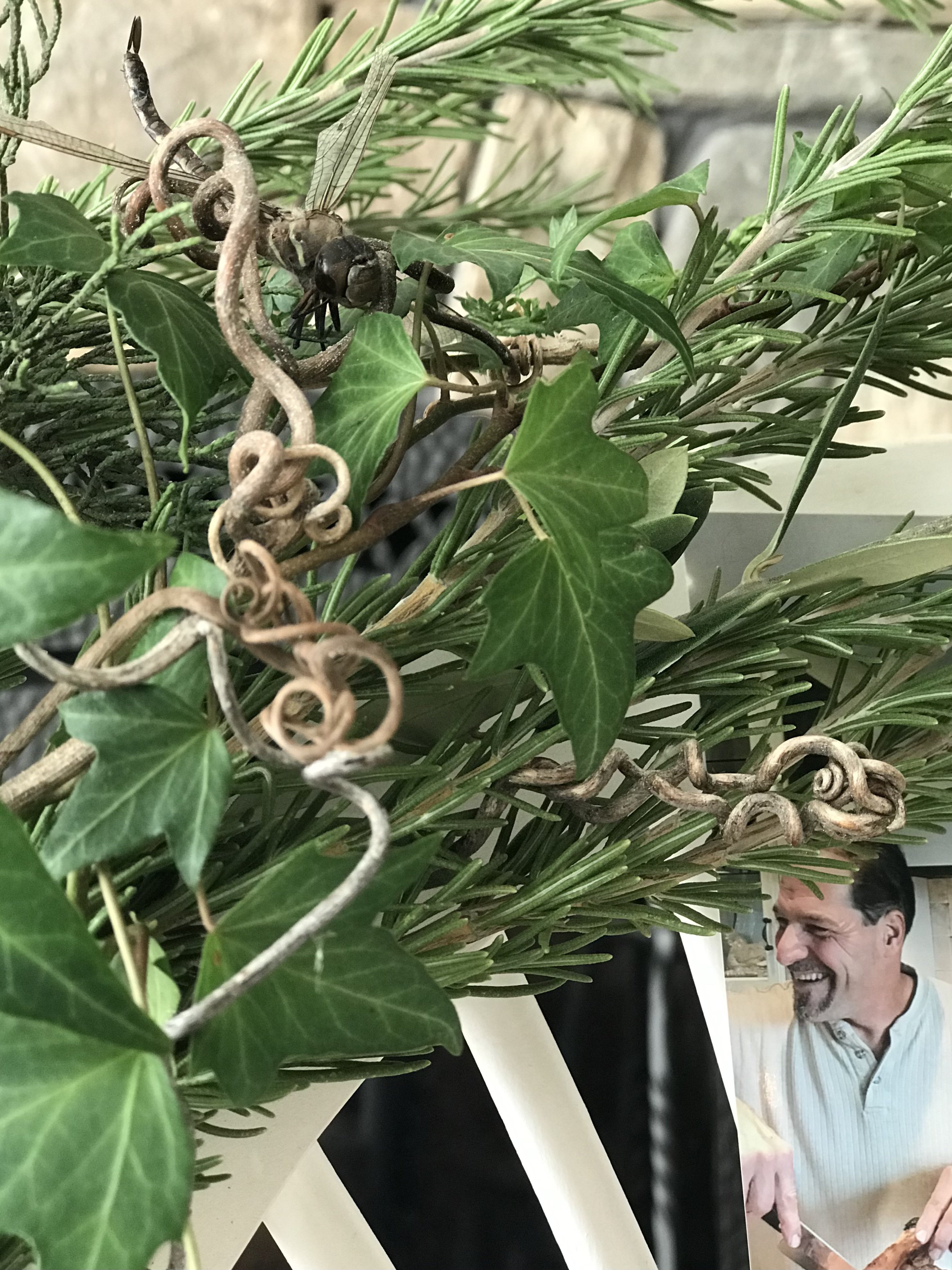 I adorned my husband’s chair with all the symbolic meaning the garden whispered to my heart: