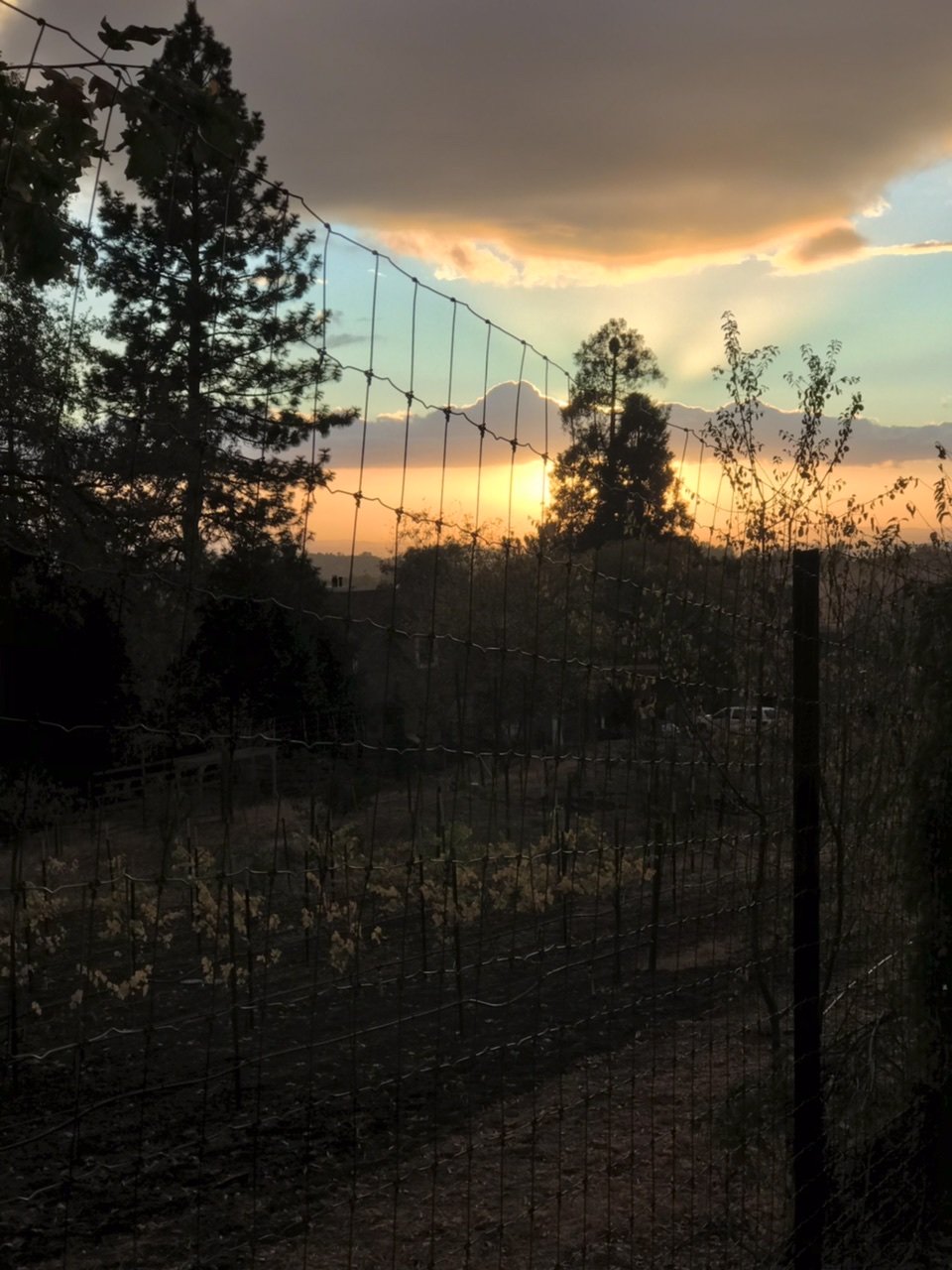 As soon as I turned onto our road, the most spectacular skyscape greeted me. I was awestruck at the loveliest cloud glowing, not a silver lining, but a golden one. Descending our driveway, I stopped and saw through your vineyard, our home was literally crowned in glory. A secret surprise designed to cheer me. It lasted for just a few minutes, such perfect timing for my soul. The grayness and the storm were nothing more than a frame to the incredibly brilliant masterpiece. Warmth and radiance emanated from what was central to my vision, my very life before me, our family, our home. You gave this beautiful life to me, to us, to our children. Priceless treasure forged in faith and humility, increased with time with loyalty and learning, gilded eternally in patience and love. And as always, I sensed the comfort of your heavenly embrace and your smile at what I had accomplished in honoring you and all who love you and I enjoyed the goodness of God.