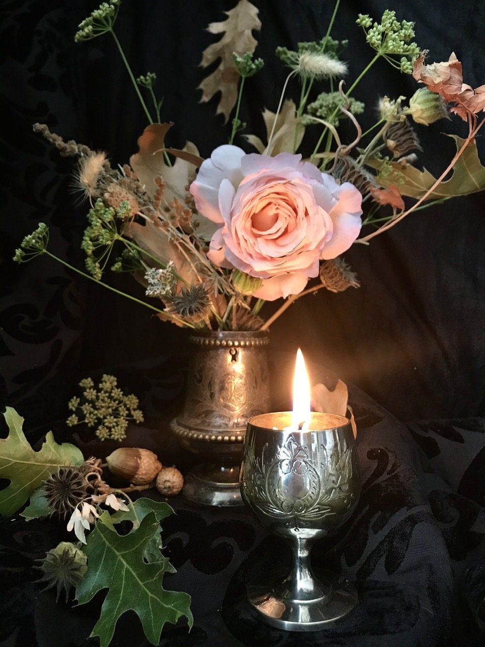 I gathered up Autumn’s gifts this afternoon, and one fragrant rose. Power has been shut off for miles in an attempt to minimize potential fires.