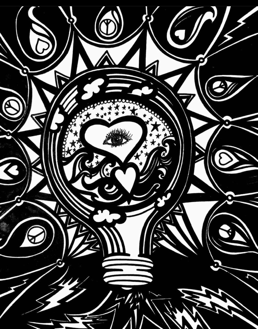 The image appears to be a beautiful mouth that holds mysterious reflections, I follow the lines and swirls, similar to patterns I decorated our sons’ guitar with years ago.